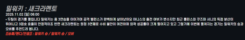 밀워키 승 같아요