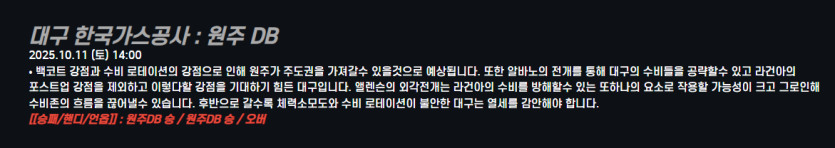 대구 한국가스공사 : 원주 DB