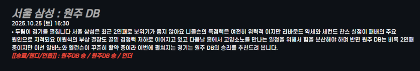 서울 삼성 : 원주 DB