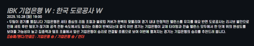 IBK 기업은행 W : 한국 도로공사 W
