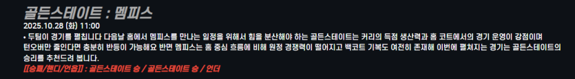 골든스테이트 : 멤피스