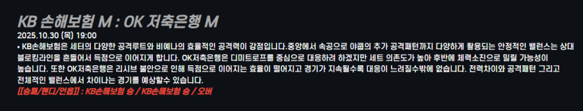 KB 손해보험 M : OK 저축은행 M