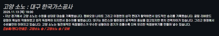 고양 소노 : 대구 한국가스공사
