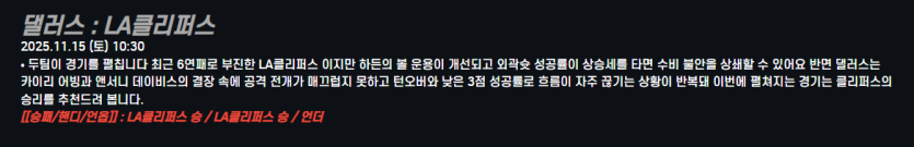 댈러스 : LA클리퍼스