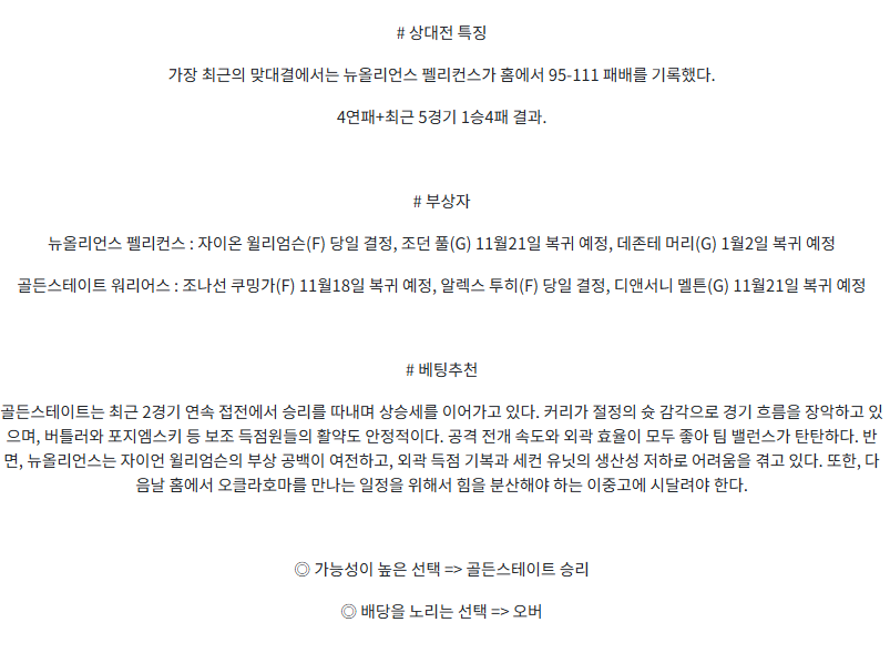 뉴올리언스 펠린컨즈 : 골든스테이트 워리어스
