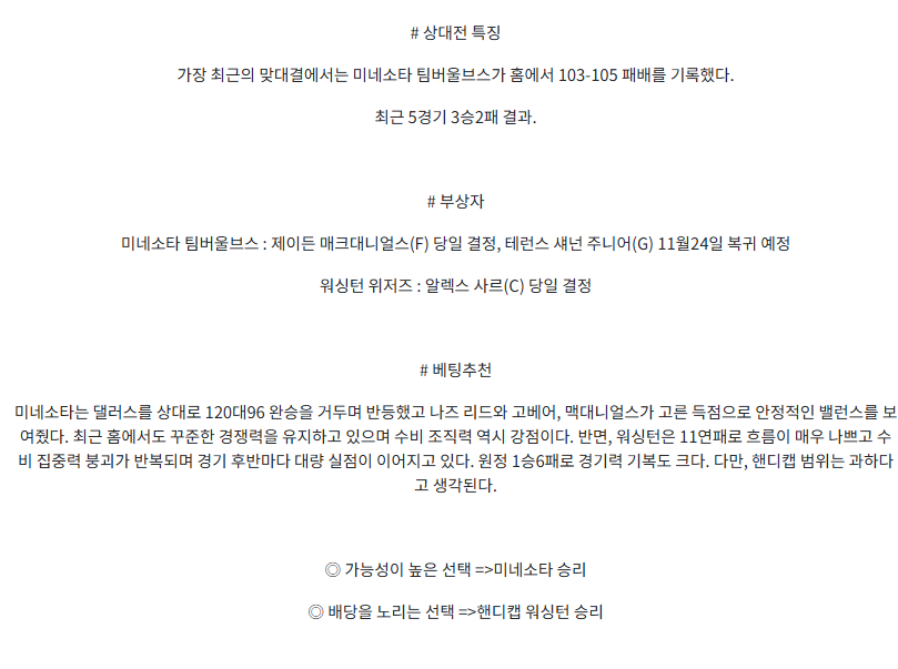 미네소타 울브스 : 워싱턴 위자드