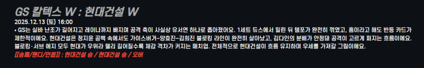 GS 칼텍스 W : 현대건설 W
