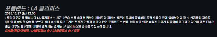 포틀랜드 : LA 클리퍼스