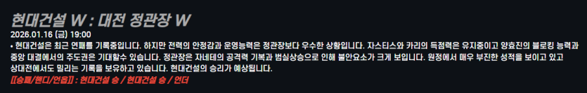현대건설 W : 대전 정관장 W