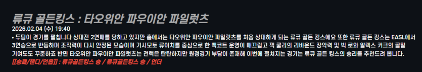 류큐 골든킹스 : 타오위안 파우이안 파일럿츠