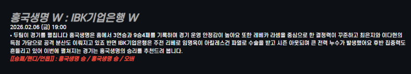 흥국생명 W : IBK기업은행 W