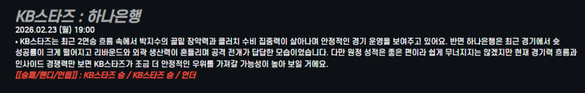 KB스타즈 : 하나은행