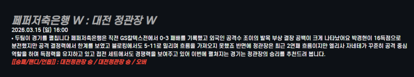 페퍼저축은행 W : 대전 정관장 W