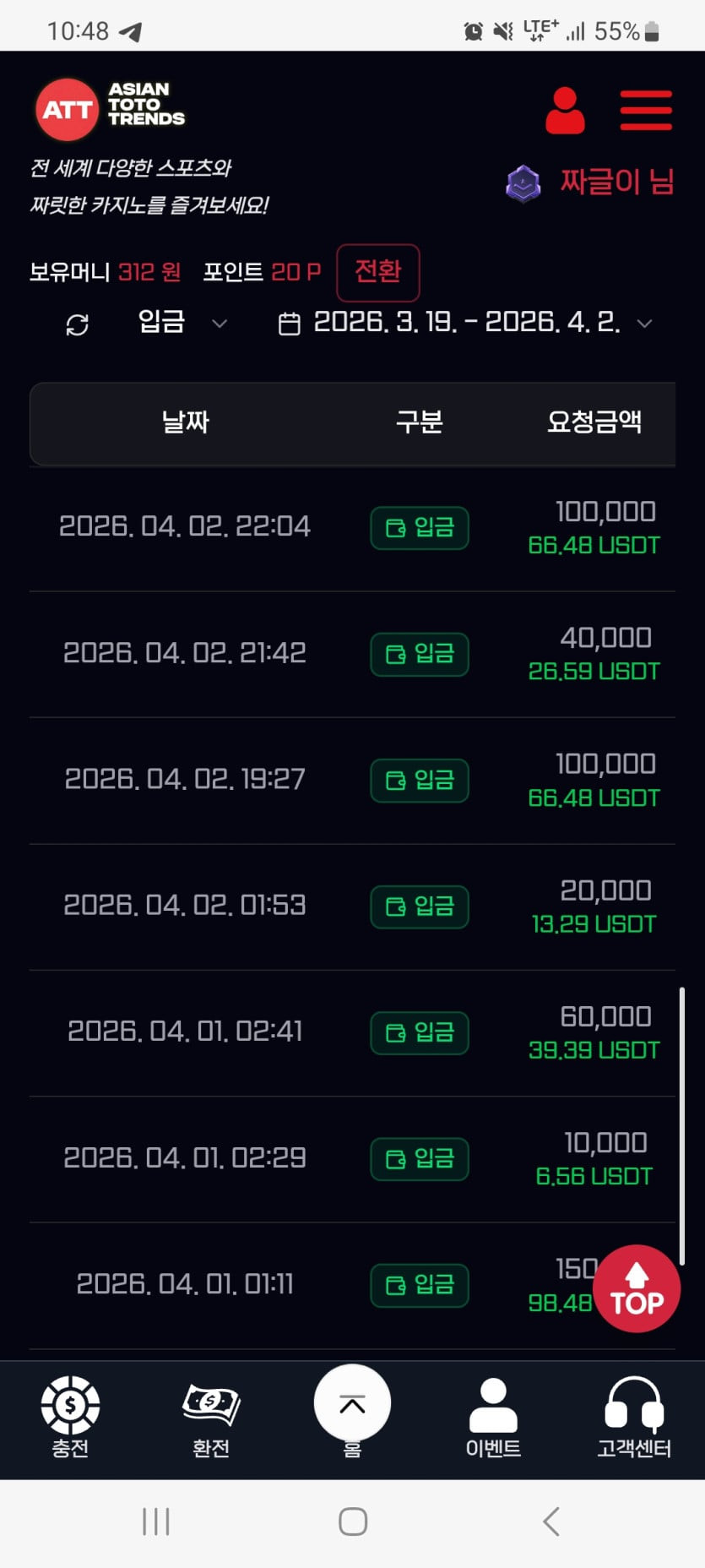 충환전빠르고 이벤트 너무많아서 너무 좋습니다.많은이용 !