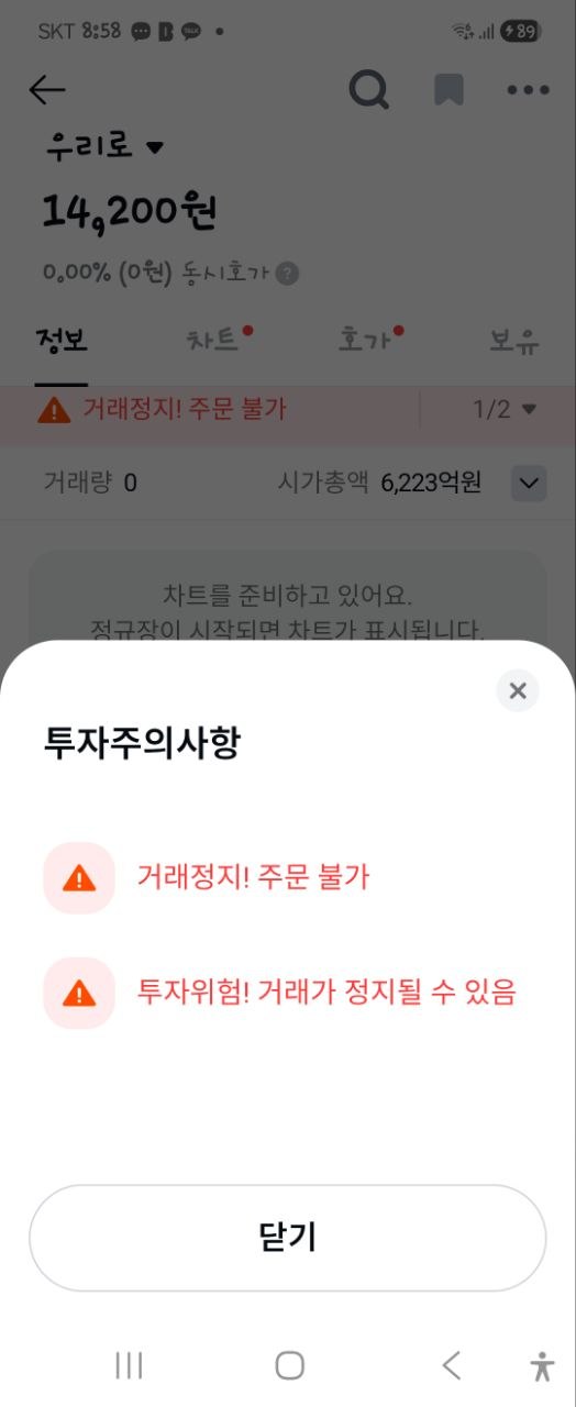 그리고 15일에 팔았더니 16일에 거래 정지... 17일 오늘 확인 하니 ...ㅋㅋㅋㅋ 하락세