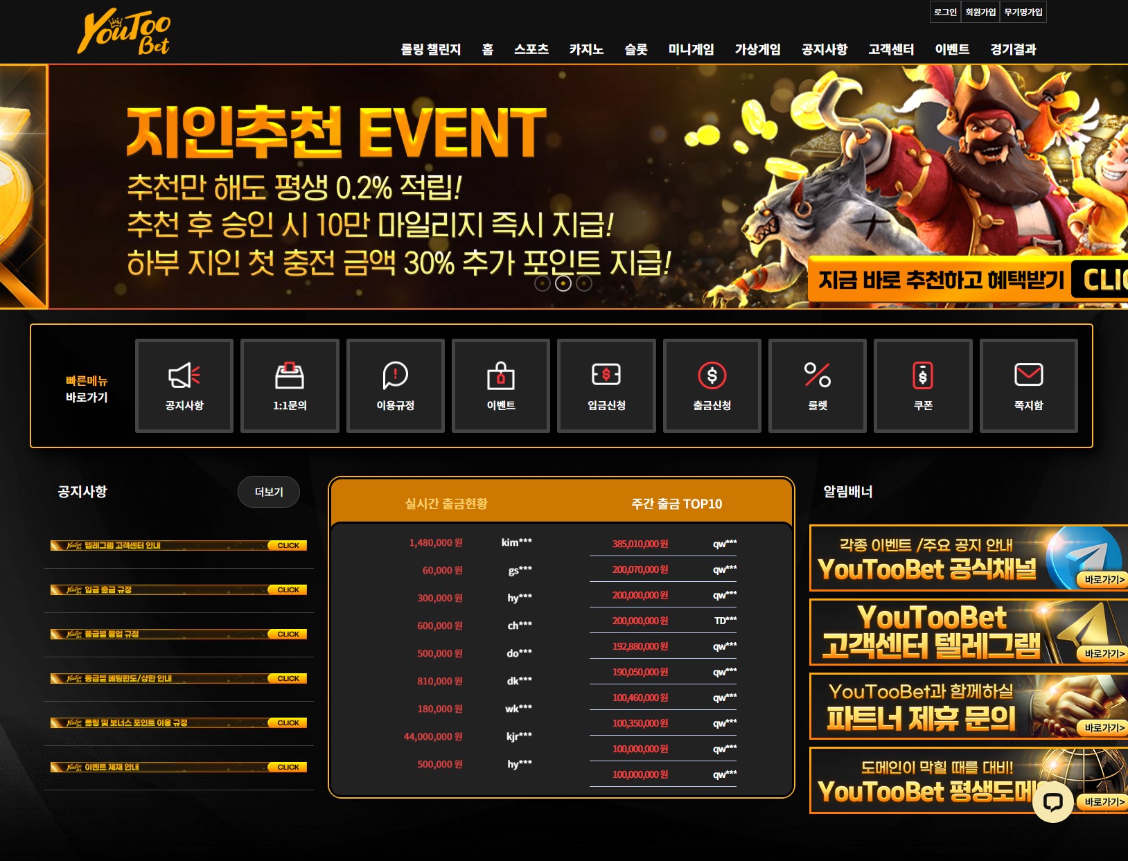 왕관계열이라는 타이틀속에서, 항상 갑질을 하는 유투벳(YooTooBet) 카지노는 핑돈도 서슴치 않게 쏘며, 전액 먹튀를 일삼고,