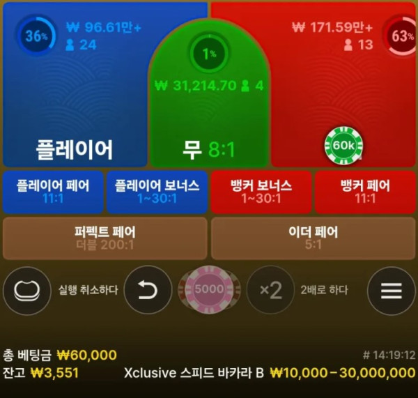 많은 분이 돈을 잃고 있을 때, 복구 욕심 때문에 오히려 더 큰 베팅을 하시는데, 제발 그러지 마시길 바랍니다. 시드머니가 줄어들수록 마음이 초조해지고 답답해지는 것은 당연한 인간의 심리입니다. 결국 계속지고 있는데도 불구하고 50만원, 100만원, 350만원 배팅을 올리며 본전 생각에 분노 베팅을 하게되는 겁니다. 결국 순식간에 가진 돈을 다 잃게 되는 경우가 굉장히 많습니다. 시드머니가 줄어든다고 절대 마음이 흔들리면 안되고, 적정 금액 수준으로 인내하며 본인의 그림 흐름이 나올 때까지 기다리셔야 합니다. 게임이 안풀리면 다른 테이블도 많으니 테이블을 옮겨서 흐름을 보면서 호흡을 가다듬으시기 바랍니다.