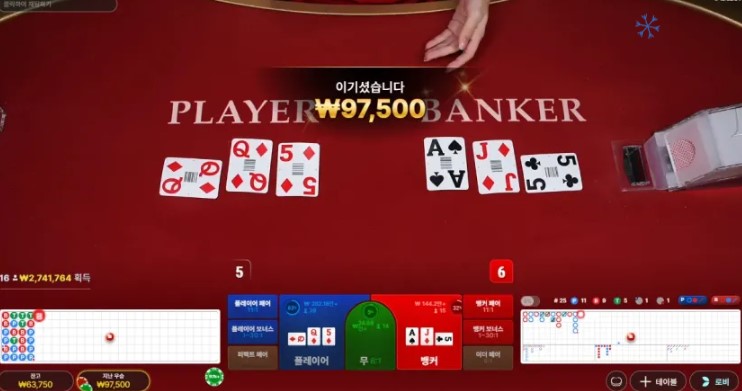 우선 바카라는 나 자신과의 심리싸움이라는 것을 꼭 기억해야 합니다. 강원랜드나 해외 카지노에서 바카라게임은 제일 많이 즐기는 게임 중에 하나입니다. 사람들에게 인기가 많은 이유는 스피드한 게임 진행과 베팅 한도가 다른 게임보다 높으므로 대단히 많은 금액을 순식간에 이길 수 있기 때문입니다. 물론, 반대로 순식간에 가진 금액을 모두 잃을 수도 있는 게임이기도 합니다.